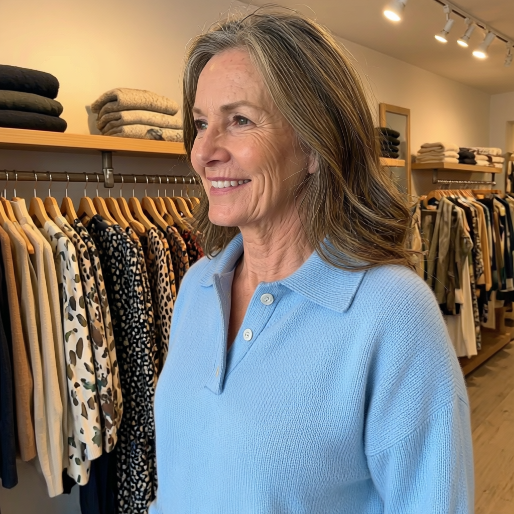 Olivia stands out through its thoughtful balance of style and ease. The flattering, structured silhouette shapes the body gently, creating a polished, feminine look without feeling restrictive. Its versatile design makes it easy to pair with elevated outfits or your favorite jeans, offering endless styling possibilities. The refined button details and fine craftsmanship lend a subtle, luxurious touch that enhances the sweater’s charm. Soft, warm, and lightweight, Olivia provides all-day comfort, making it a perfect companion from morning to evening.