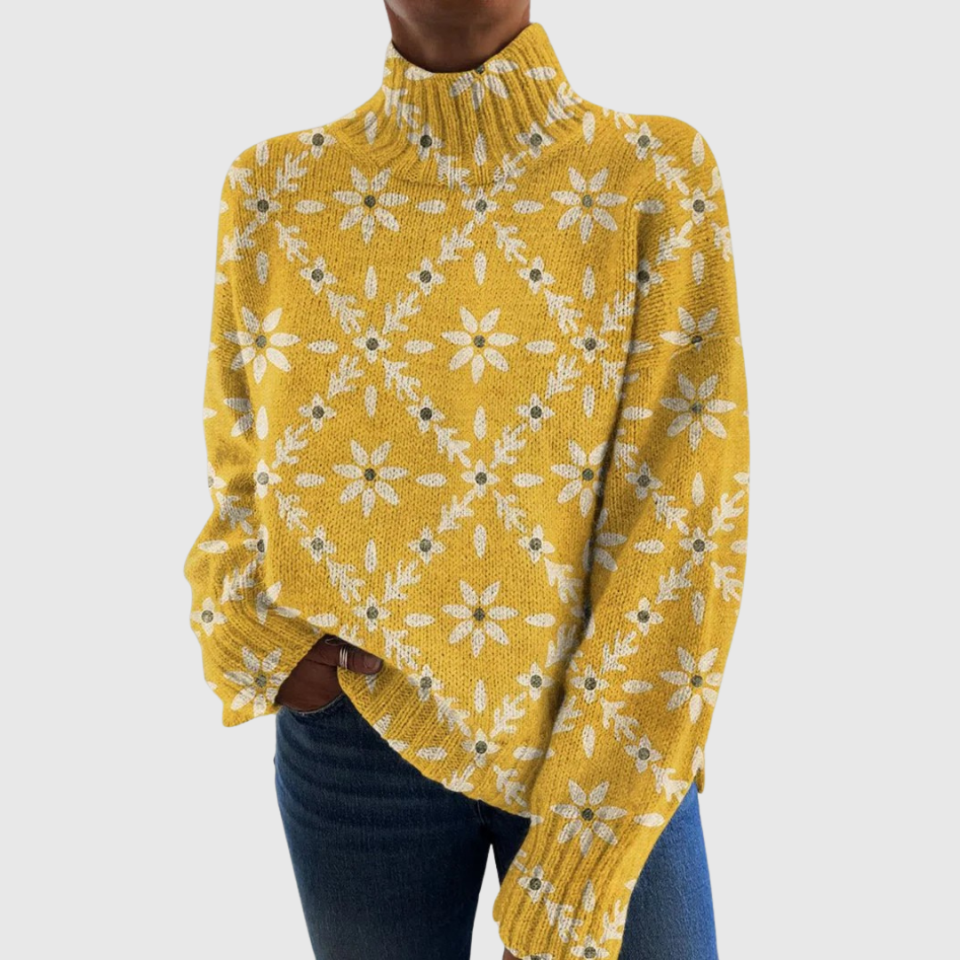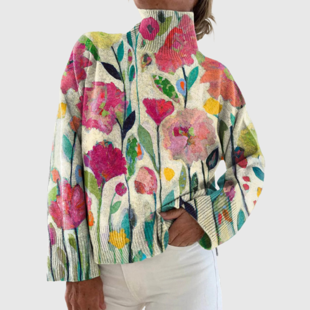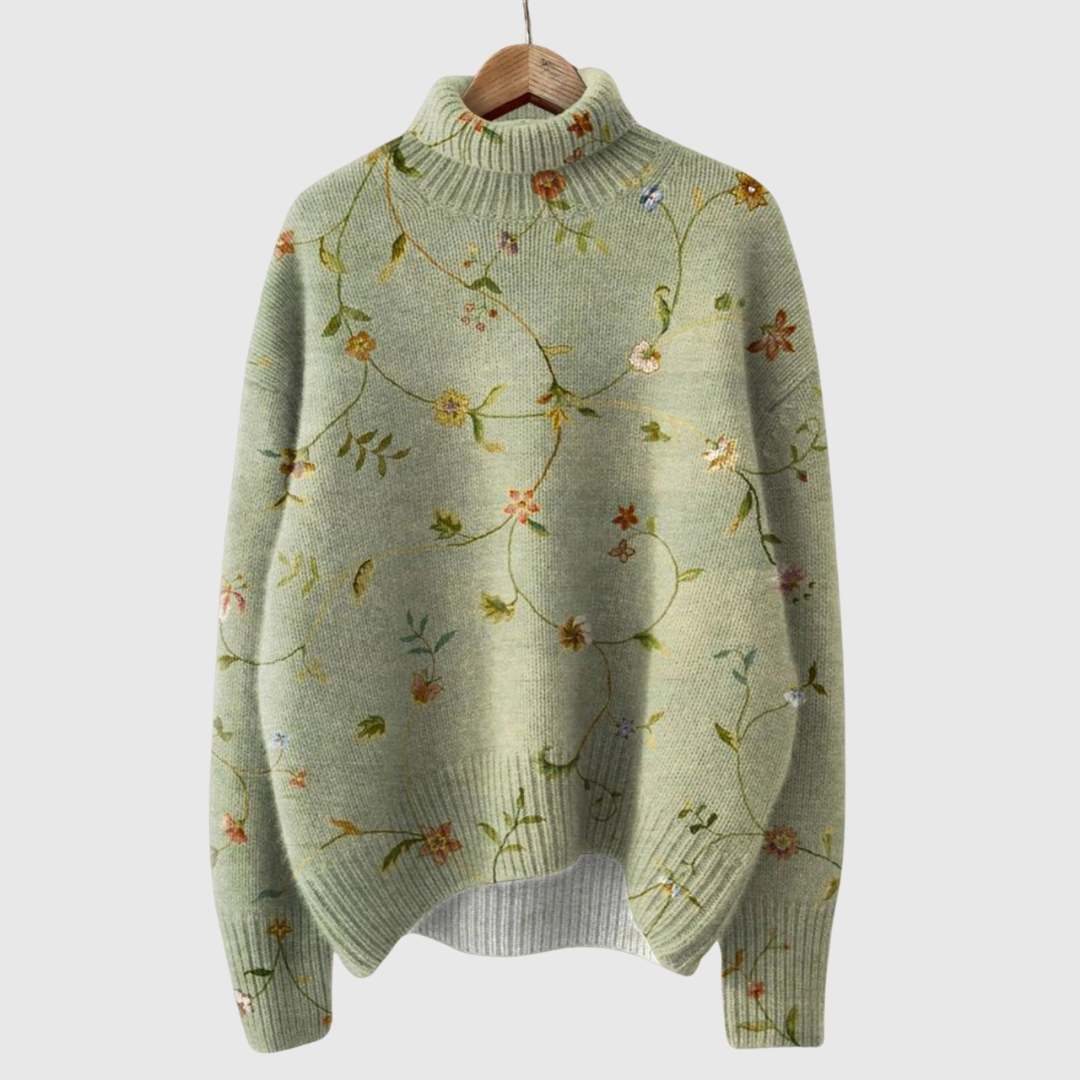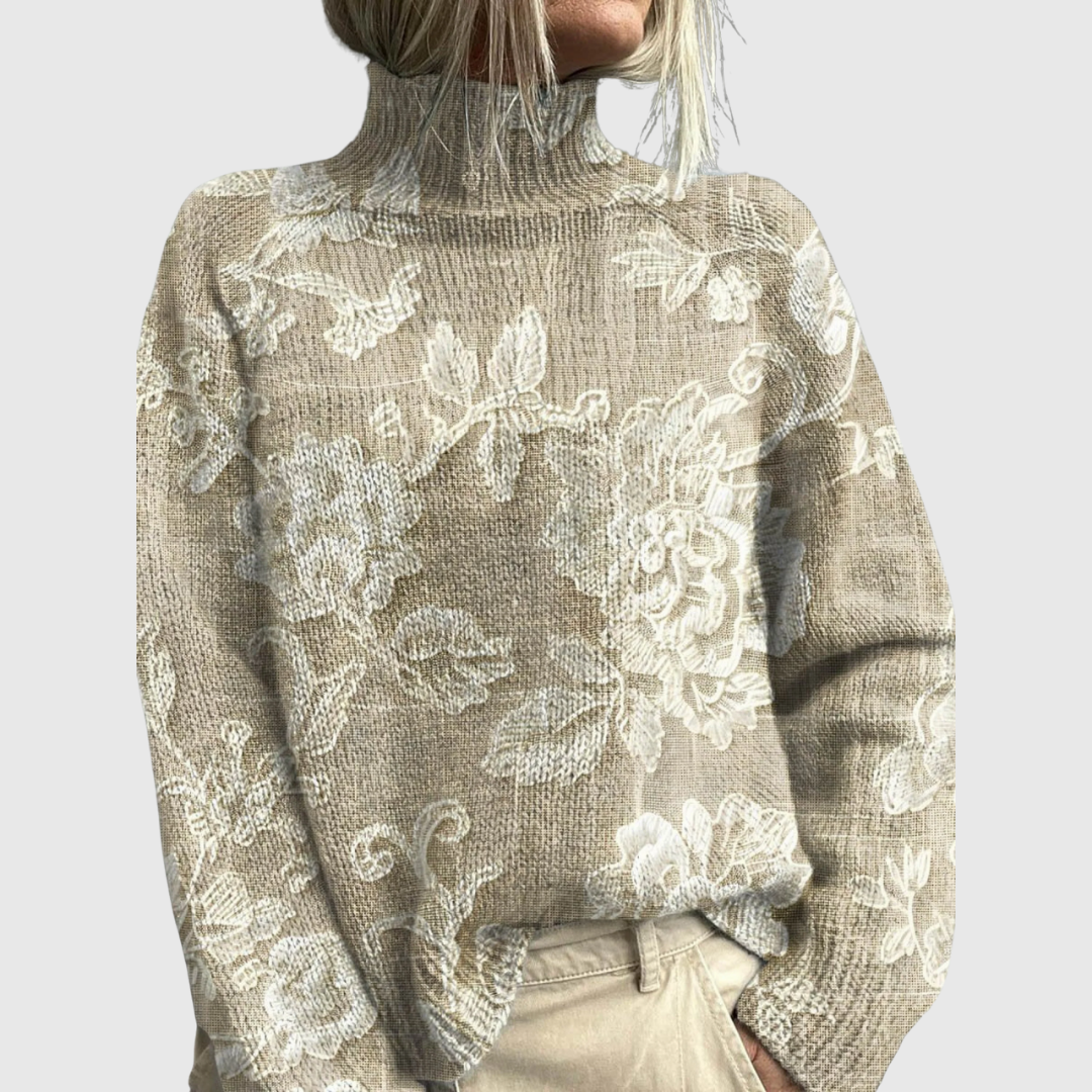 Ariana | Floral Elegance Knit Turtleneck Sweater for Women