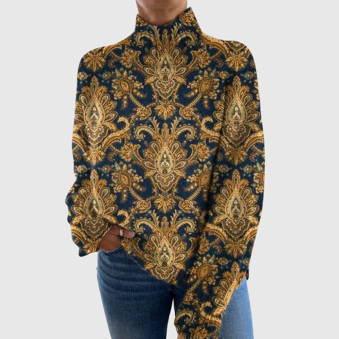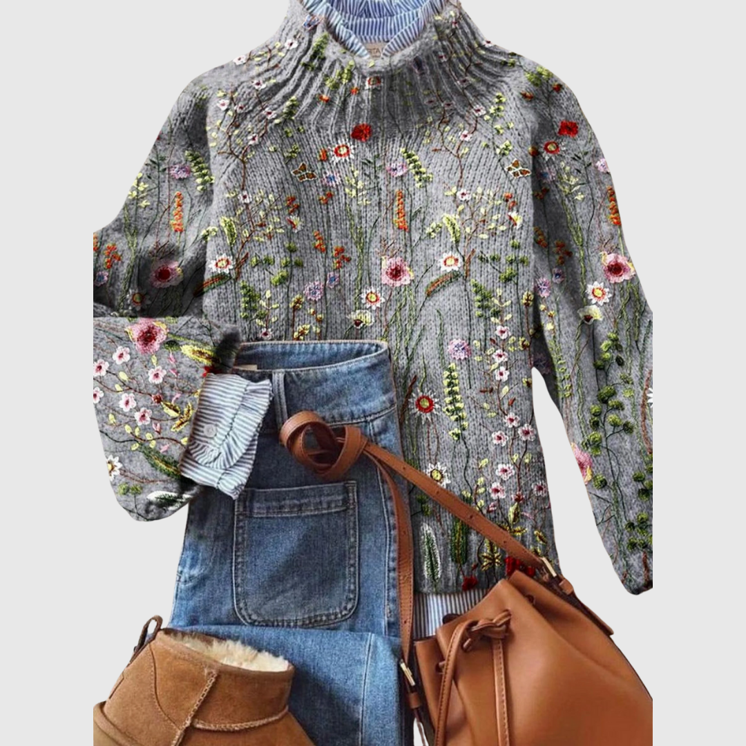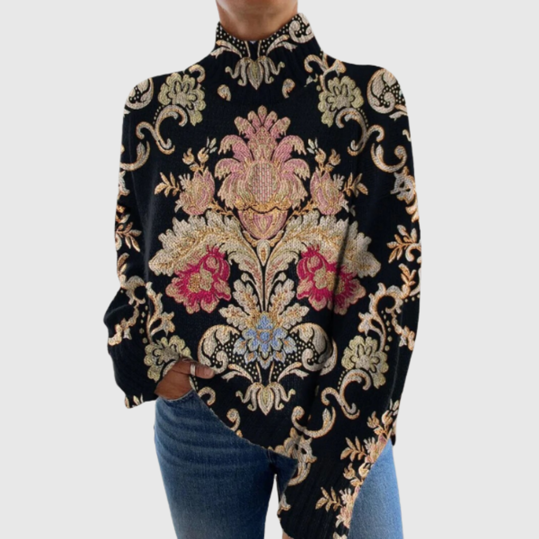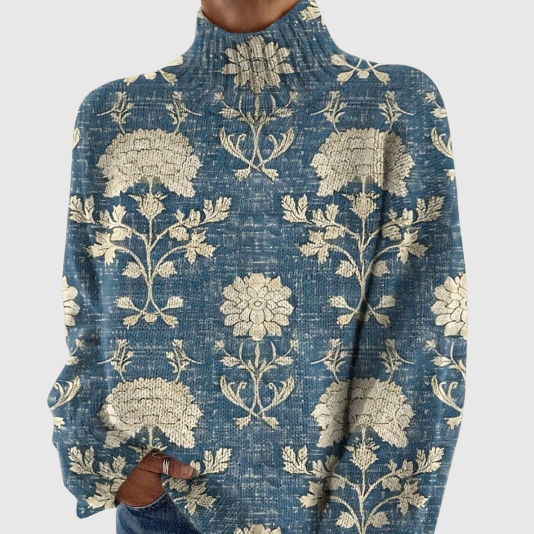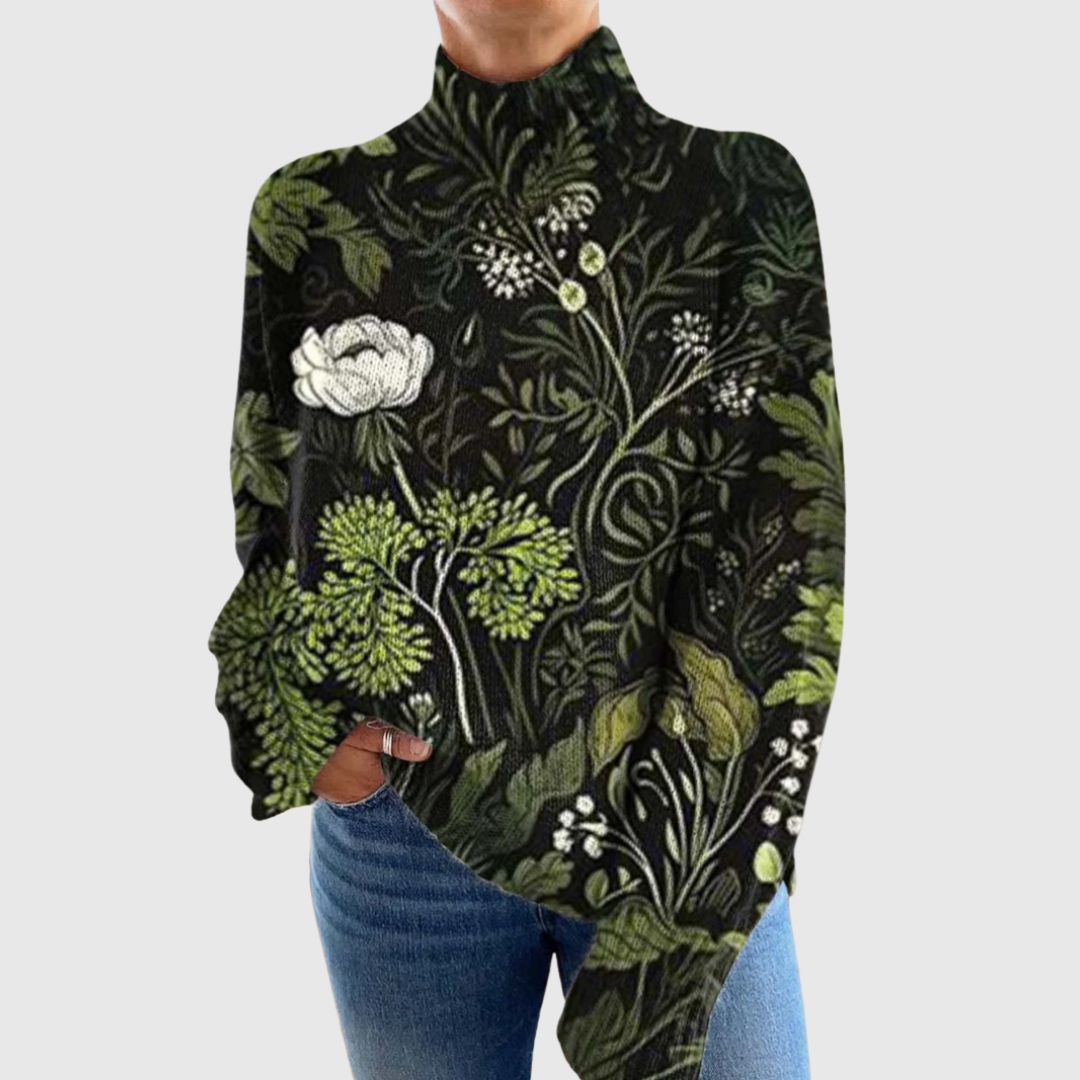 Ariana | Floral Elegance Knit Turtleneck Sweater for Women