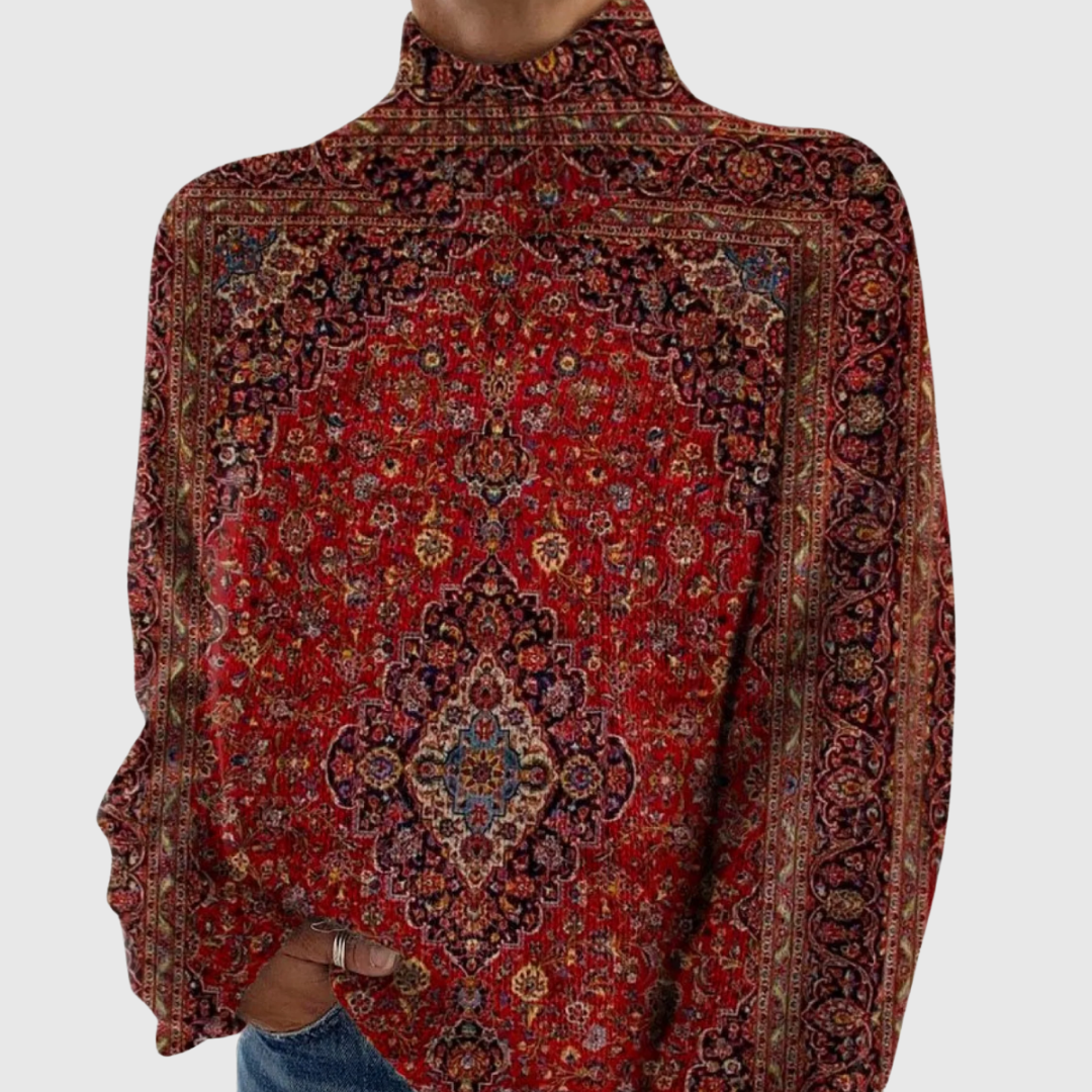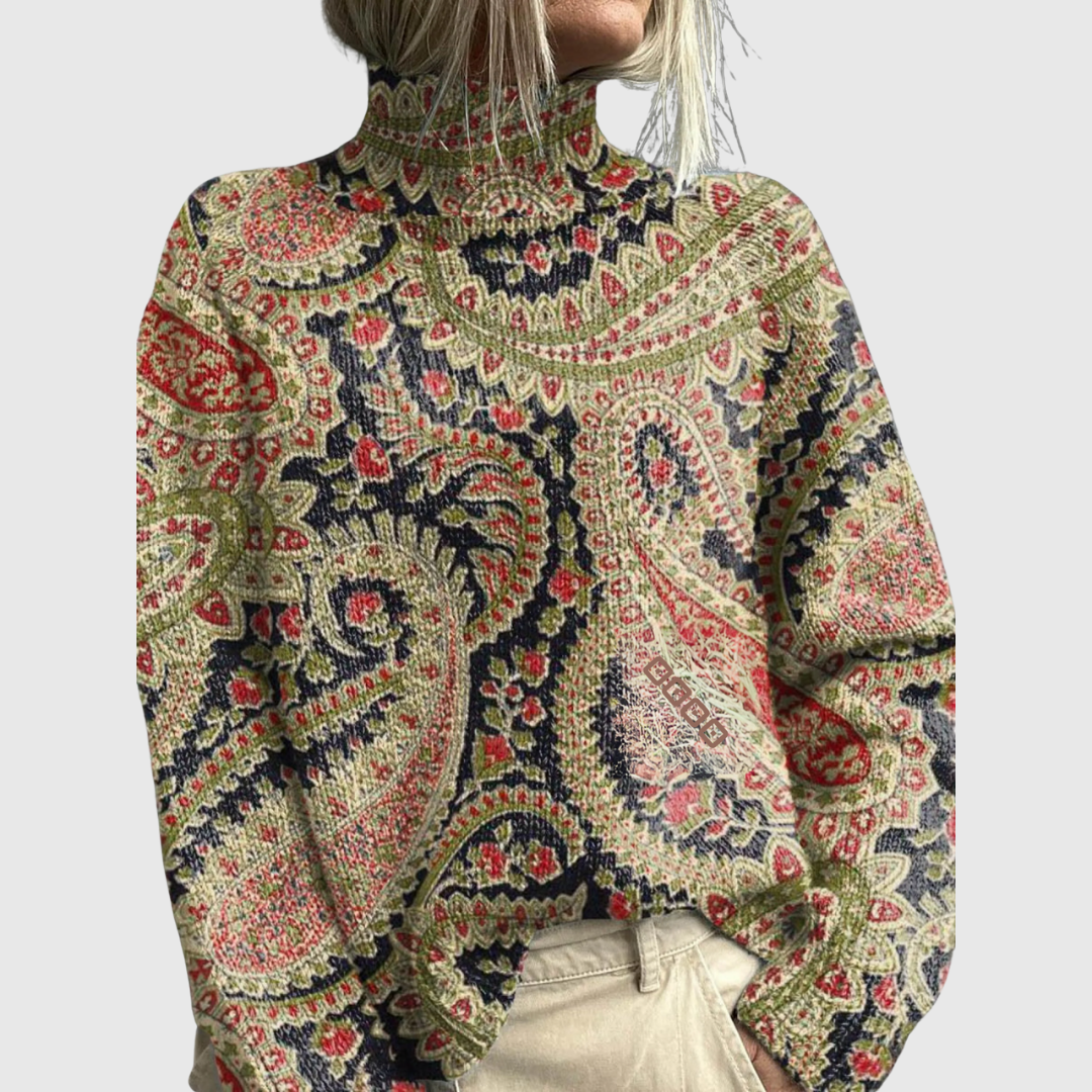 Elara | Vintage Rose Pattern Knit Turtleneck Sweater