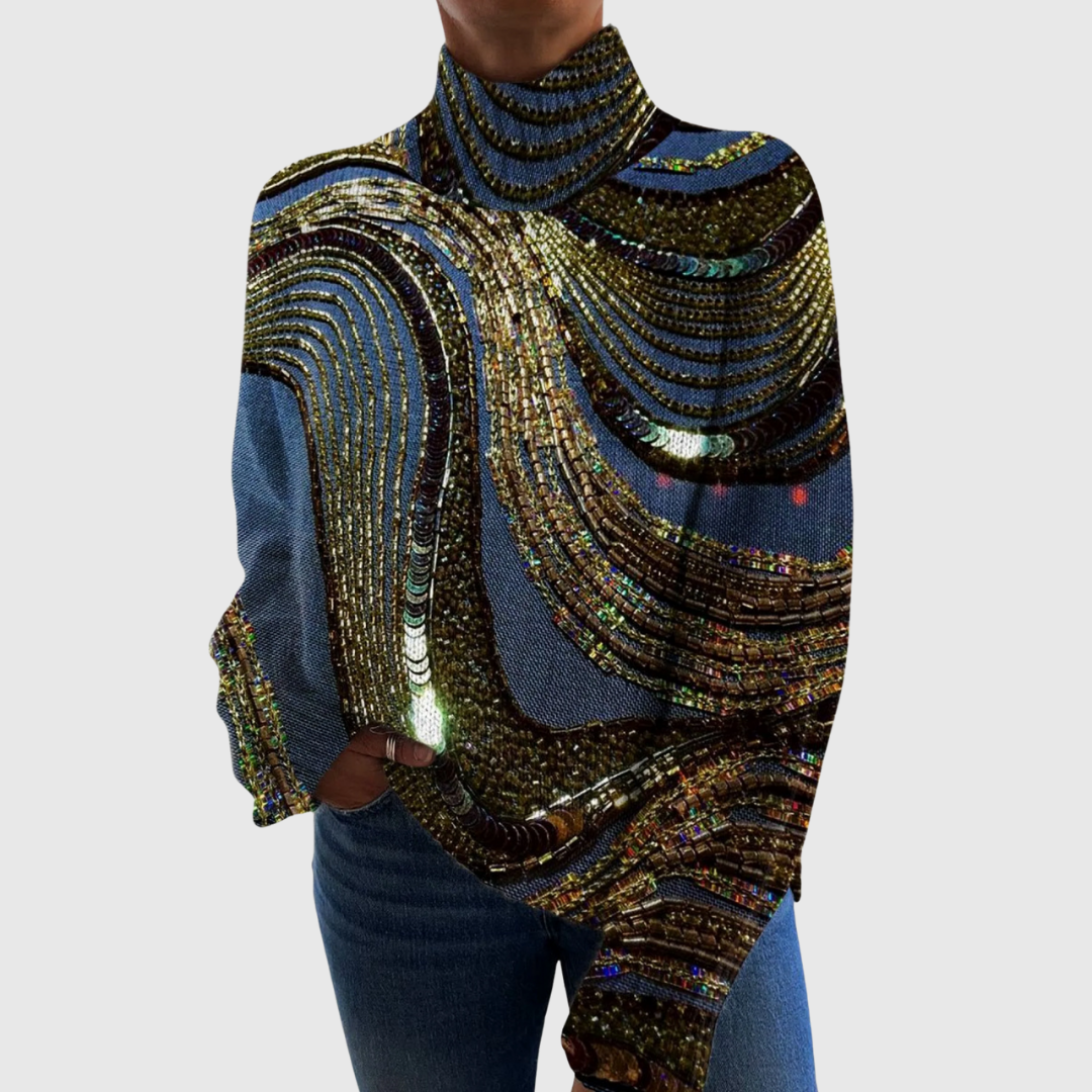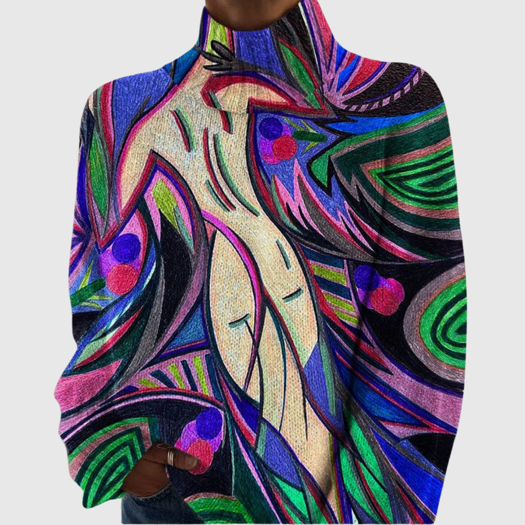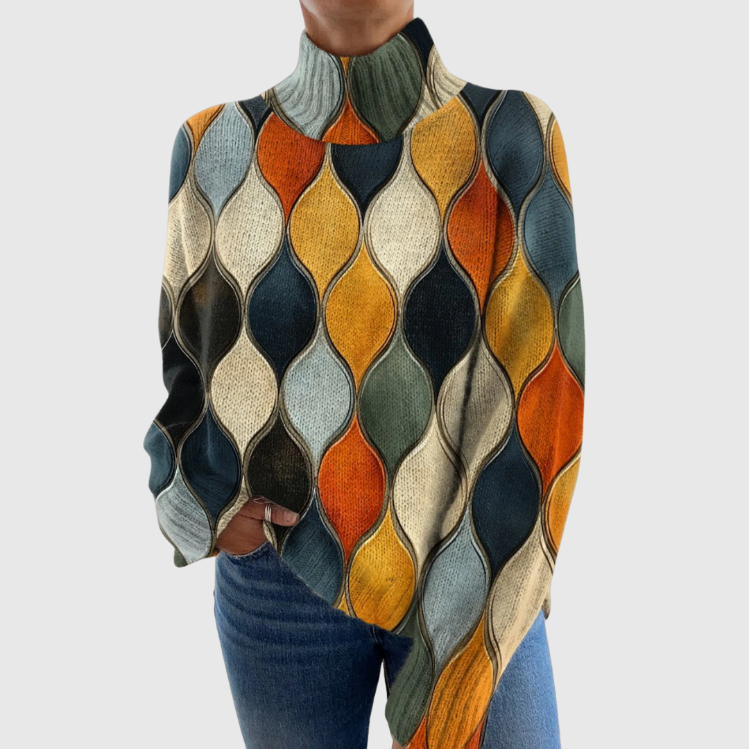 Elowiran | Wavy Lines & Ovals Knit Turtleneck Sweater