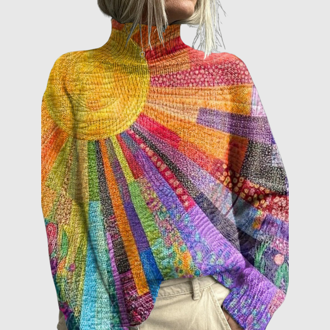 Rowenne | Vibrant Sunburst Knit Turtleneck Pullover Sweater