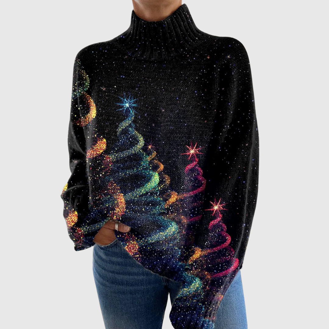 Ariella | Knit Turtleneck Sweater with Glittering Christmas Tree Design