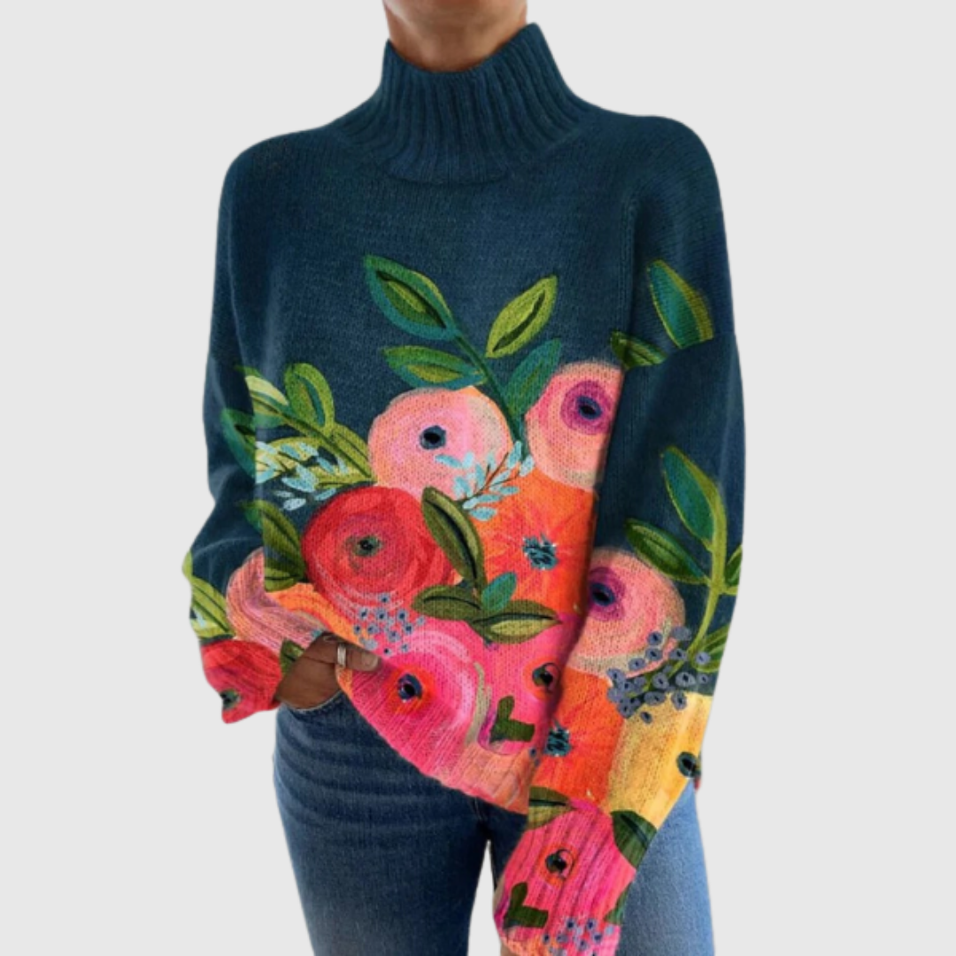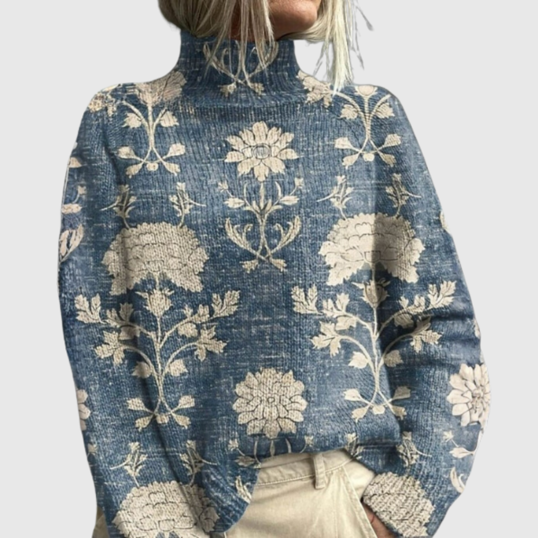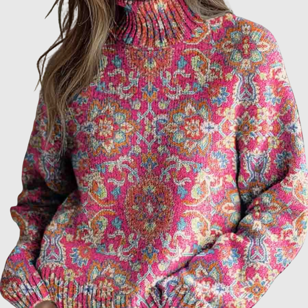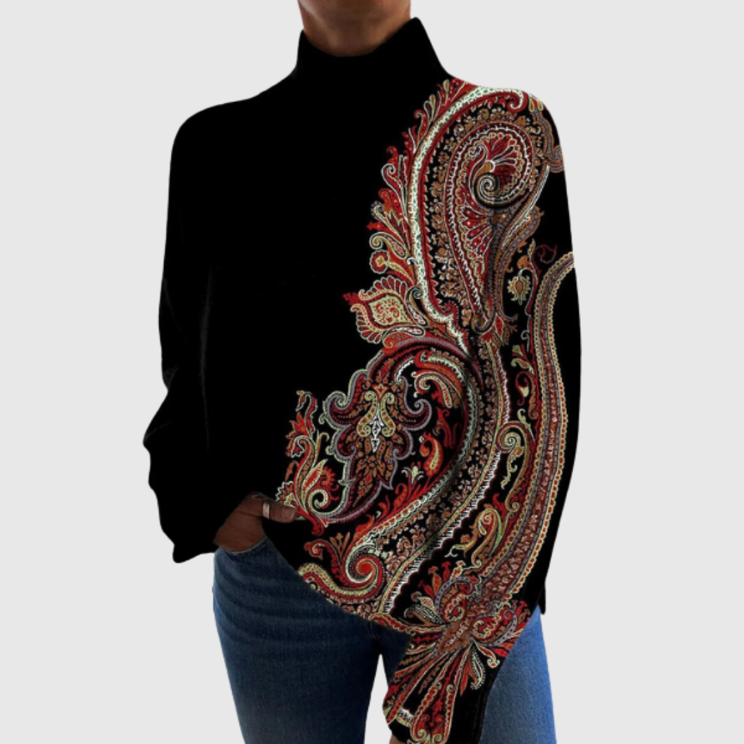 Eldith | Paisley Knit Turtleneck Sweater - Vintage Style